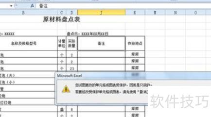 梁誉首先打开已设置保护的工作表,尝试编辑时,系统会弹出提示对话框。