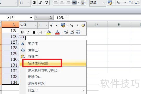 选中目标数据,右键点击,从菜单中选择选择性粘贴功能。