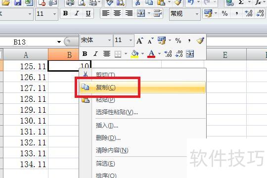 3、接着右键点击单元格,从菜单中选择复制命令。