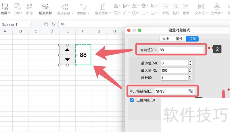 在数值旁按住鼠标左键拖动,绘制一个微调按钮,具体所示。