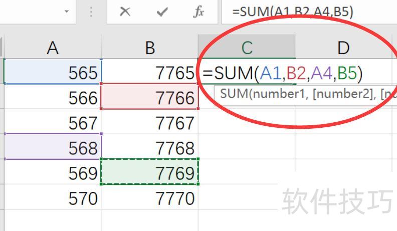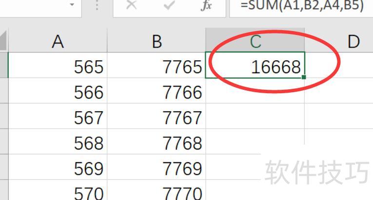 若仅需计算部分单元格之和,可点击相应单元格,呈现所示效果。