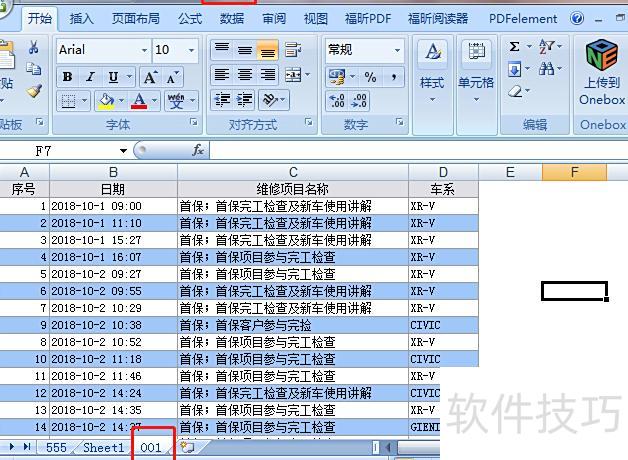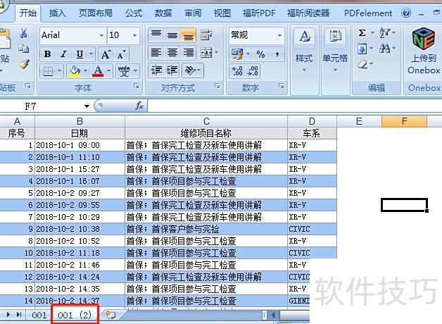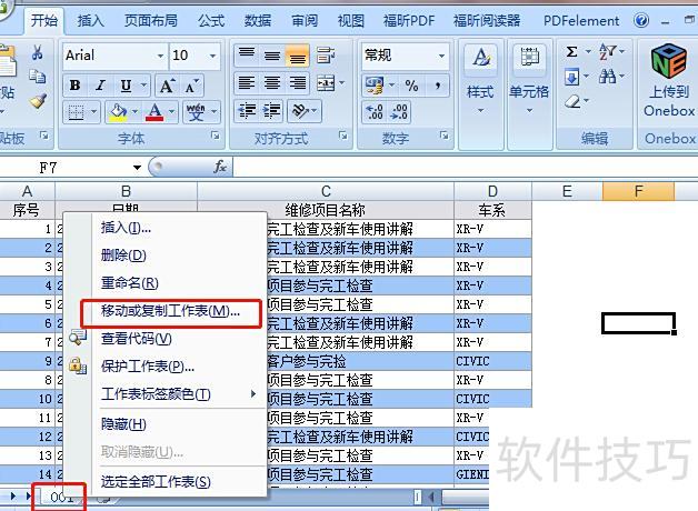 以表A的001工作表为例,需将其复制。