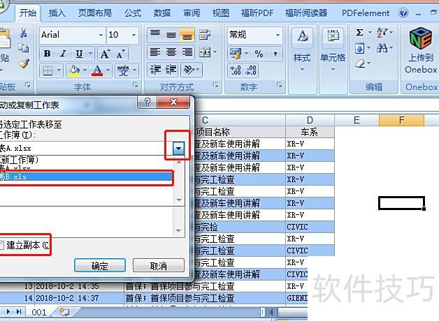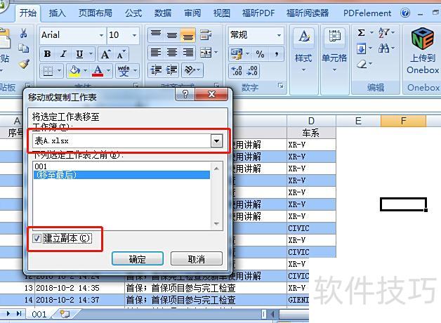 若在同一工作簿中复制表格,需选择当前文件名并勾选建立副本选项。