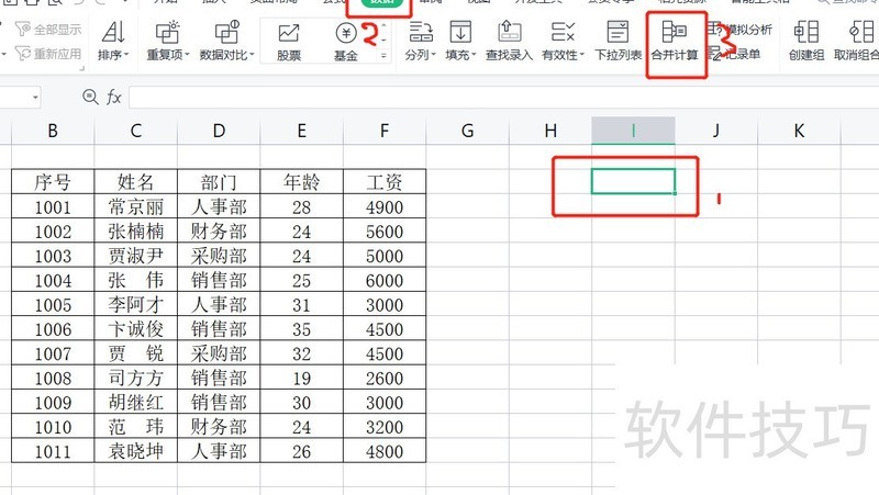 新建工作表,选择数据中的合并计算功能,生成如下新表格。