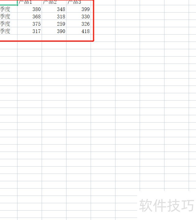 以下图为例,三个月的销售数据情况相近,我们以此进行操作。