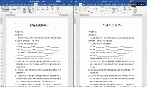 此时电脑桌面被两个Word文档平分,大小相同,可同步缩放滚动,便于对照查阅。