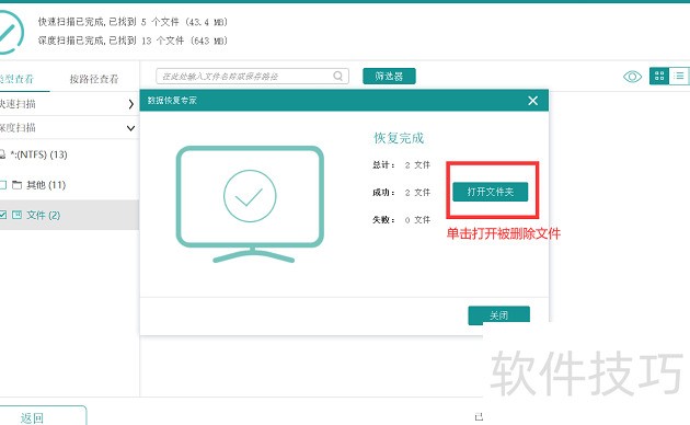 找到目标文件后,点击右下角恢复按钮即可。建议不要恢复至原位置,以免造成恢复失败。