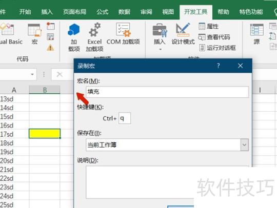 第二步,完成上述操作后,打开Excel表格,将鼠标移至顶部工具栏的开发工具,点击录制宏按钮,具体所示,随后进入下一步操作。