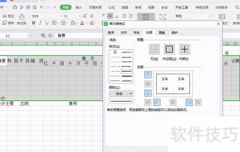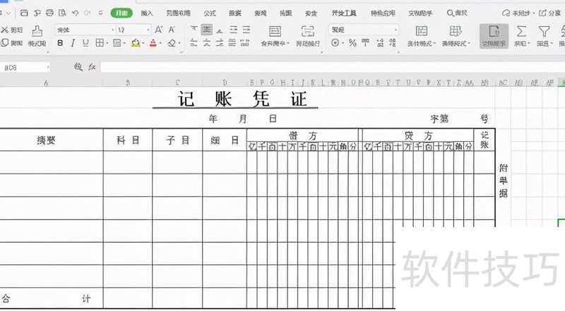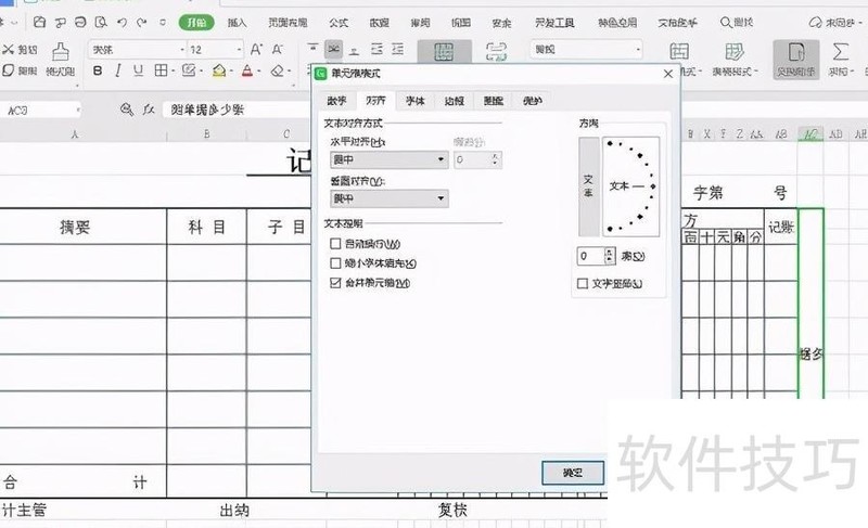 最后进行格式调整:为记账凭证添加双下划线,先选中第一行的记账凭证,点击开始选项卡中的线条样式,选择双线条,随后在文字下方绘制双线。接着,选中第29列的第3至第11行,合并单元格并居中,填入附单据X张。右键点击该单元格,选择设置单元格格式,在对齐选项中勾选垂直方向的竖排文本,点击确定,实现文字竖向排列。采用同样步骤,将第28列的记账二字也设置为竖向排列。完成上述操作后,记账凭证表格的制作即告完成。