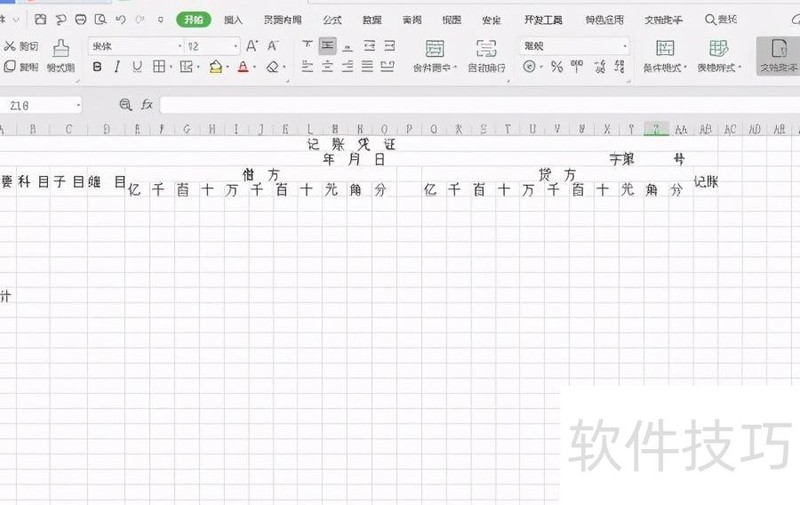 打开WPS中的空白Excel模板,将工作表重命名为会计凭证。观察所需制作的纸质会计凭证主体部分,统计其最大列数,所示,共计28列。