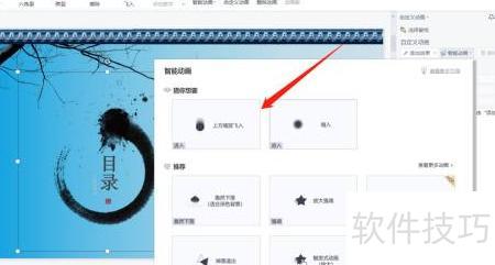 打开自定义动画,于右侧边栏选择添加动画,以智能动画为例进行设置。