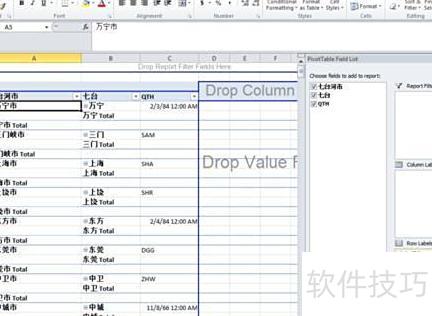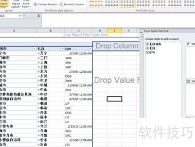 第七步:通过设置列标签和行标签来调整透视表的行列内容,改变分析重点,也可直接拖动字段到表格中进行布局调整。