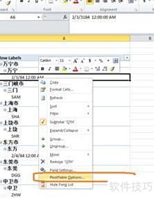 打开Excel,通过设置使数据透视表的多个行标签并排显示。