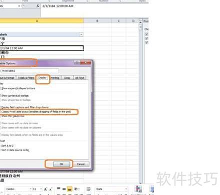 3. 进入数据透视选项卡,点击显示,勾选经典数据透视表布局(启用网格中字段拖放),最后点击确定。