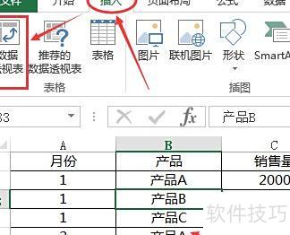 第一步:在插入选项卡中选择数据透视表或数据透视图。