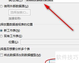 打开创建数据透视表对话框,确认数据区域,选择放置位置(默认为新工作表),点击确定即可完成插入。