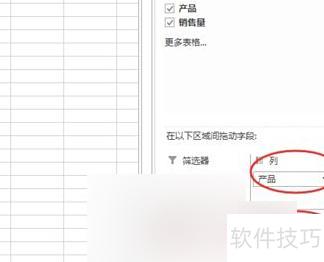 第五步:在右侧数据透视表字段列表中,勾选需分析的项目,所选内容将自动添加至轴字段(分类)。根据实际分析需要,可将其拖动至报表筛选、列标签、行标签或数值区域进行调整。