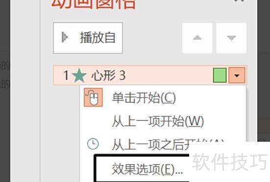 点击动画效果旁的下拉箭头,弹出菜单后,选择所需的效果选项即可。