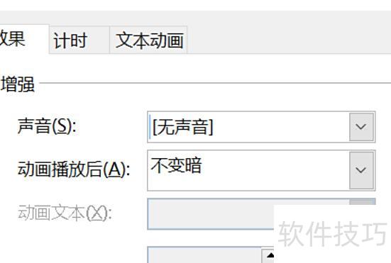 选择后将弹出显示动画效果名称的对话框,此时声音选项后标注为无声音。