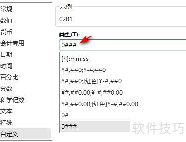 点击自定义后,在右侧类型栏输入0,其中0表示插入的数字,表示其后的若干位数字。