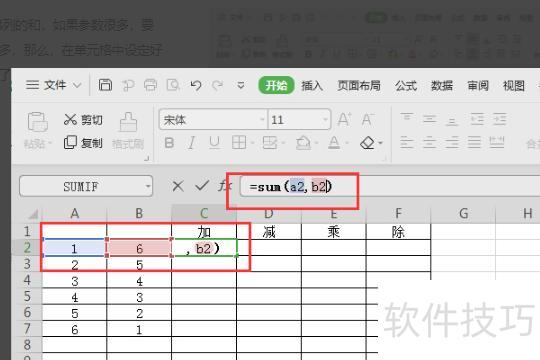 点击fx,输入=sum(a2,b2),按回车键即可计算出a2与b2的和。