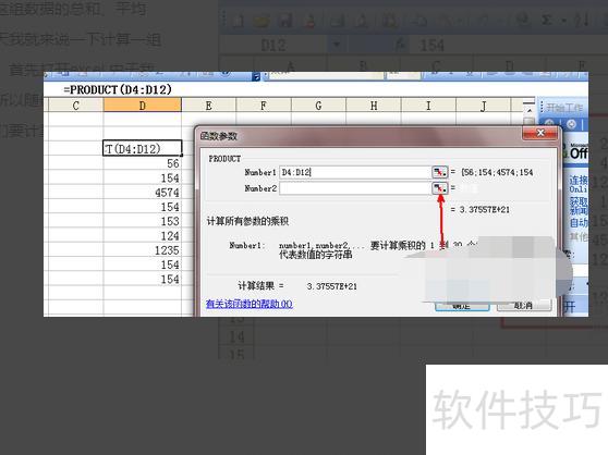 完成第一组数据乘积计算后,接下来需计算第二组数据。请点击函数参数页面中number2右侧的按钮,点击后即可开始选择下一组数据。