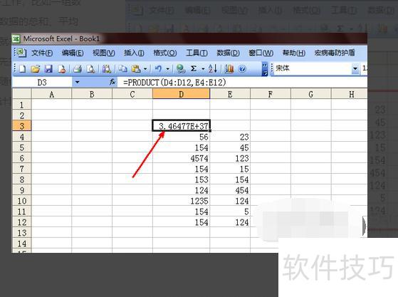 点击确定后,单元格中显示两组数据的乘积,因演示数据过大,乘积内容无法完整呈现。