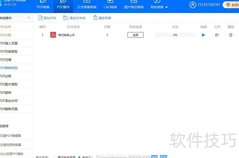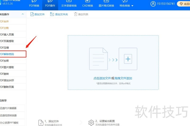 进入后找到PDF解密页面,点击并上传需要解密的文件即可。