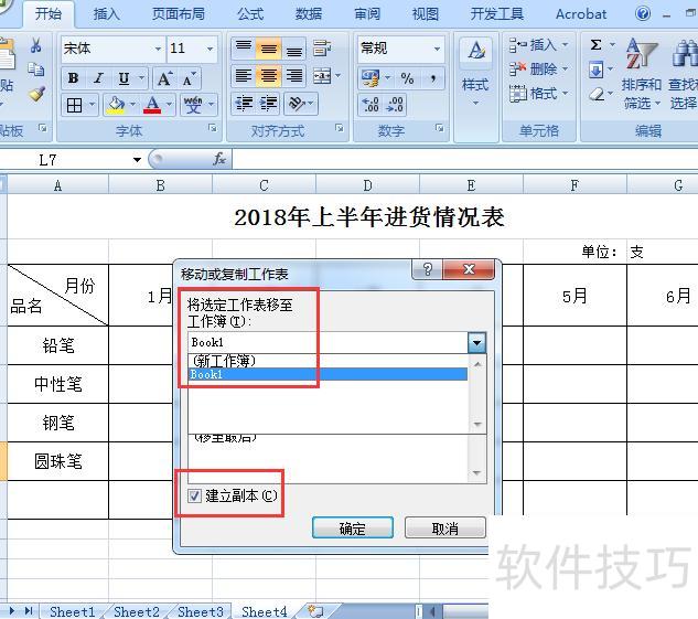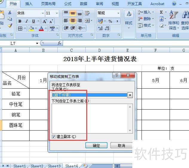 Sheet4是被复制的工作表,Book3是在复制时新建的工作簿。
