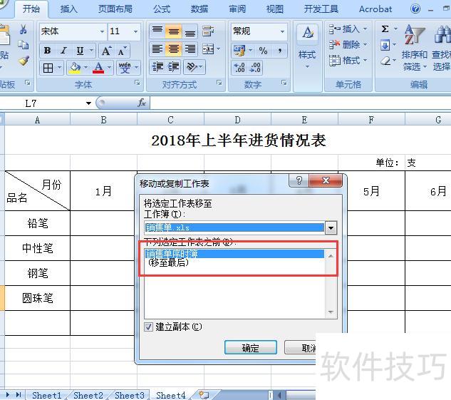 选择后点击确定,完成工作表复制,结果所示:Sheet4为新复制的工作表。