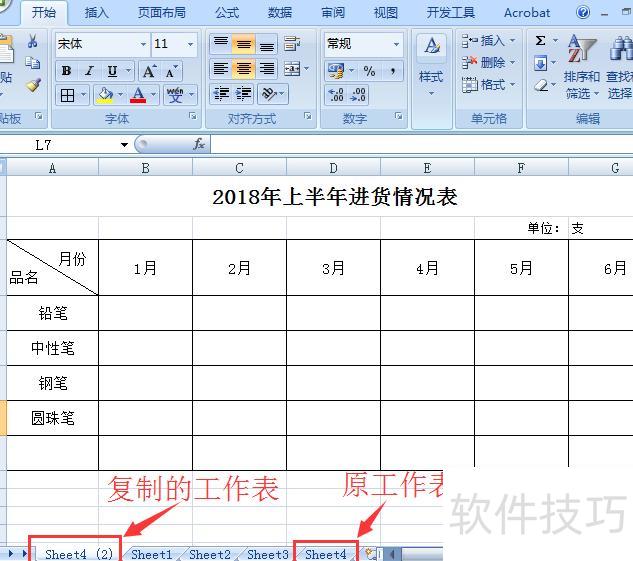点击确定后,工作表复制完成,结果所示:Sheet4(2)为新复制的表格。