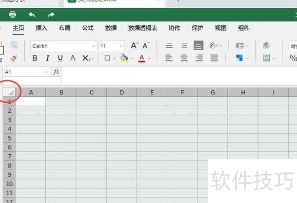 单击第1行与A列交叉处的倒三角,即可选中整个表格。