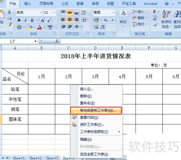 在下方工作表名称(Sheet4)处右击,选择移动或复制工作表。