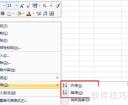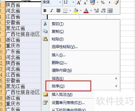 选中区域后右键点击,从弹出菜单中选择排序选项。