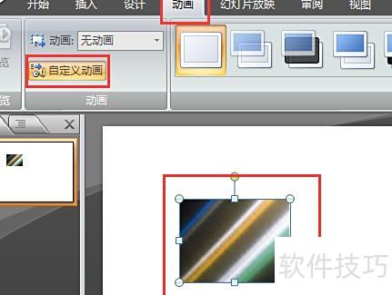 在PPT 2007中,先选中图片,再进入动画选项卡,点击自定义动画进行设置。