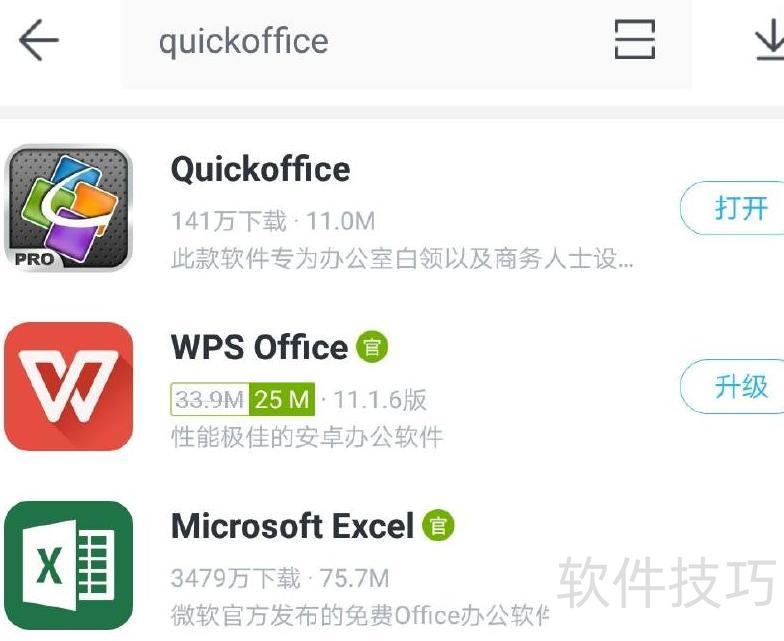 我下载了首个Quickoffice软件