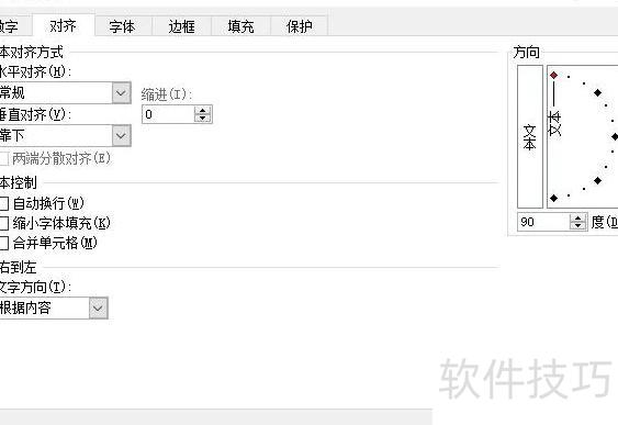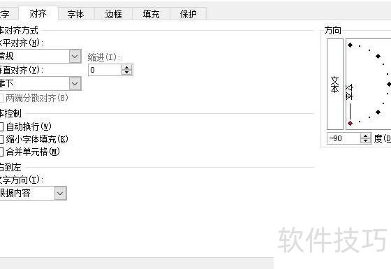 预览效果所示:第五步为关键操作,选中A列后进入单元格格式设置,对齐方式中将文字方向调整为-90度。
