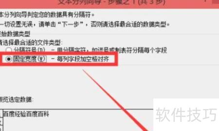 该单元格无符号,先选固定列宽,再点击下一步即可。