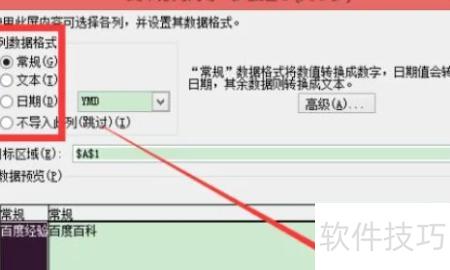 可在此选择常规、文本或日期等选项,确认后点击完成即可。