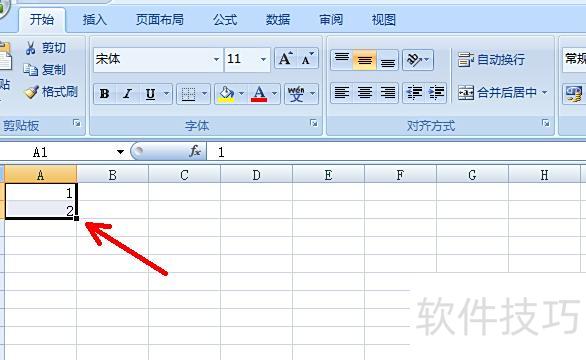 打开Excel,在第一个单元格输入1,在第二个单元格输入2。