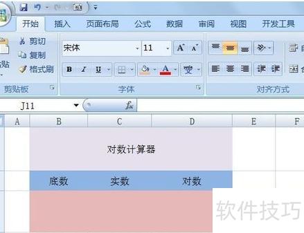 打开Excel,创建表格,底数为对数函数的底,实数为待求对数的数值,在对数栏计算对应结果。