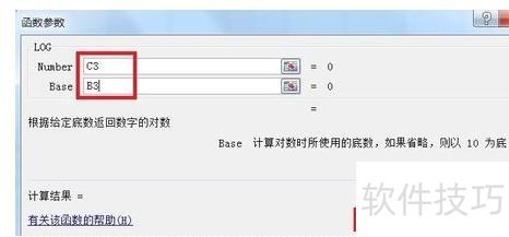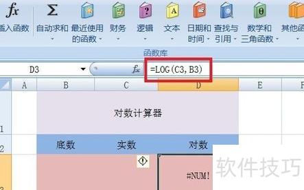 在C3和B3输入实数与底数后按回车,即可计算出对应的对数值。