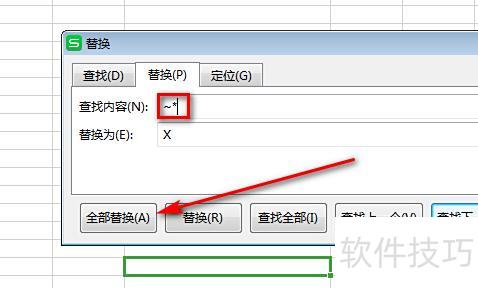 按下Ctrl+H,在查找内容输入~*,替换为输入X,点击全部替换即可完成操作。