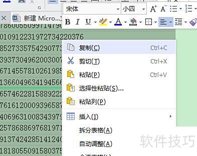 打开需替换的Excel文件,选中目标列,右键复制后粘贴到新建的Word文档中。