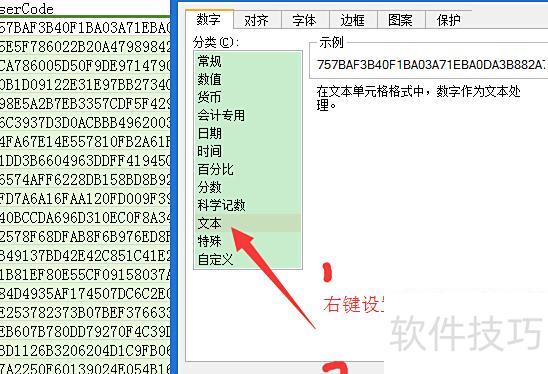 切换至Excel,在选定的列上右键选择设置单元格格式,于数字中选文本并确认。