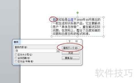 选中文字后,在开始选项卡右侧点击查找按钮。