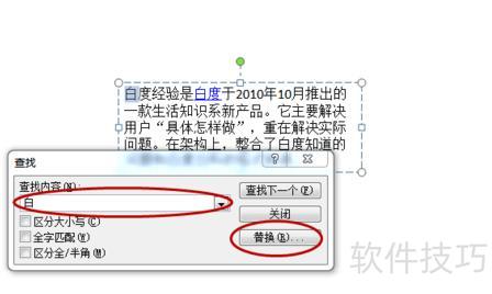在查找内容框中输入需替换的文字,然后点击替换按钮。
