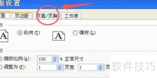 接着上一步操作,点击后会出现页面设置对话框,再选择其顶部的页眉/页脚选项。