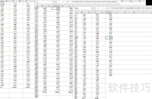 若要在保持随机数上下限范围不变的前提下使结果接近目标平均值,目前唯一可行的折中方法是:将36个数分为两部分处理。其中一部分(如E1:E10)保持原范围120~280,另一部分(如E11:E36)则提高下限至200,范围变为200~280。通过调整不同区间的数值分布,使整体均值逐步趋近预期值。多次按F9刷新后,即可获得较稳定的结果并予以固定。