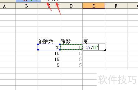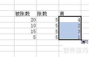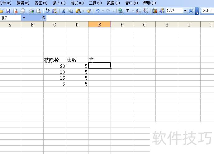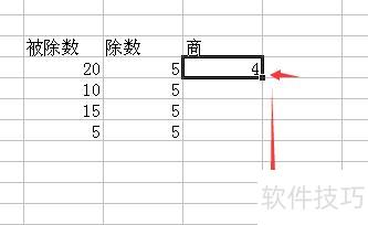 打开Excel文件,所示,包含被除数和除数,需计算两数相除的商。